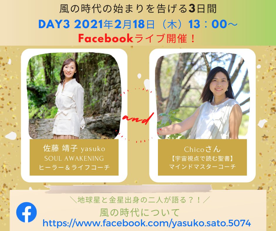 18日(木)13:00~ は、【宇宙視点で読む聖書】マインドマスターコーチ・Chicoさんとのトークライブです。