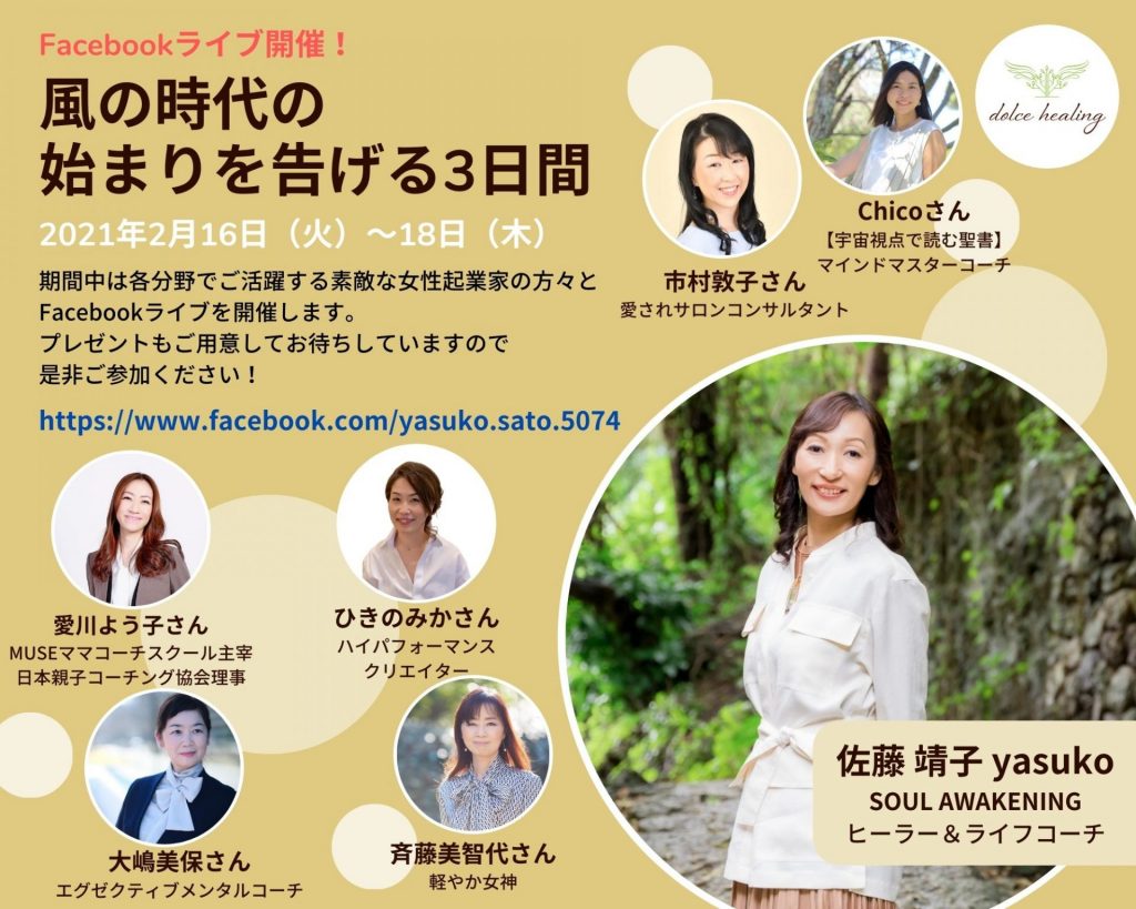 期間中は各分野でご活躍する素敵な女性起業家の方々と、Facebook ライブを開催します。