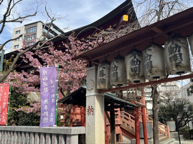 この玉蔵院に伺った後、駅の反対側に行こうと思って歩いていたら、河津桜が綺麗に咲いている小さなお寺(浦和不動尊)があって、フラッと立ち寄りました。