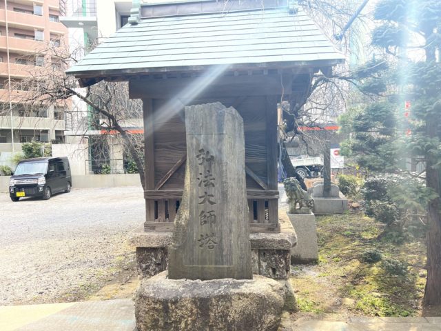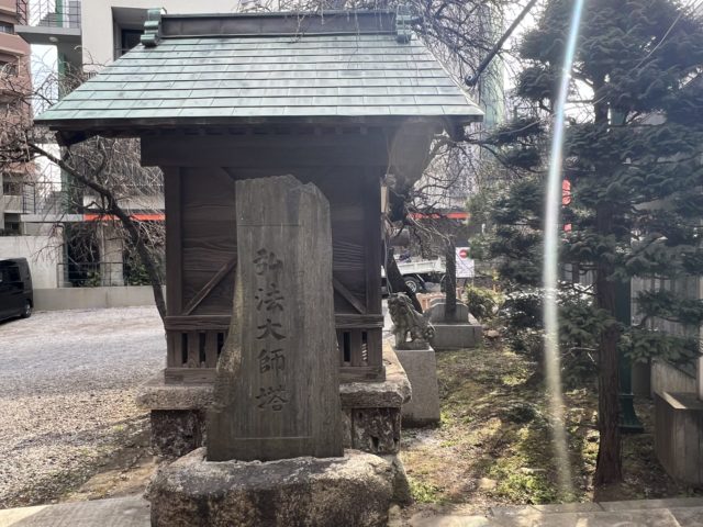 写真を撮っていたら、ある石碑に妙に光が入るので、「何だろう?」と思って見てみると、”弘法大師の搭” となっていました。