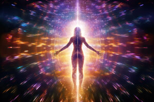 HOME > ソウル・コントラクト・リーディング > Quantum field grid of colorful light particles surrounding a human form 2024年11月3日 author